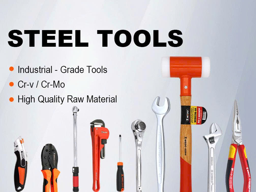 Hardware hand tools made from different raw materials, like hammers, spanners, wrenches, pliers, sockets, hex keys and screwdrivers, etc.